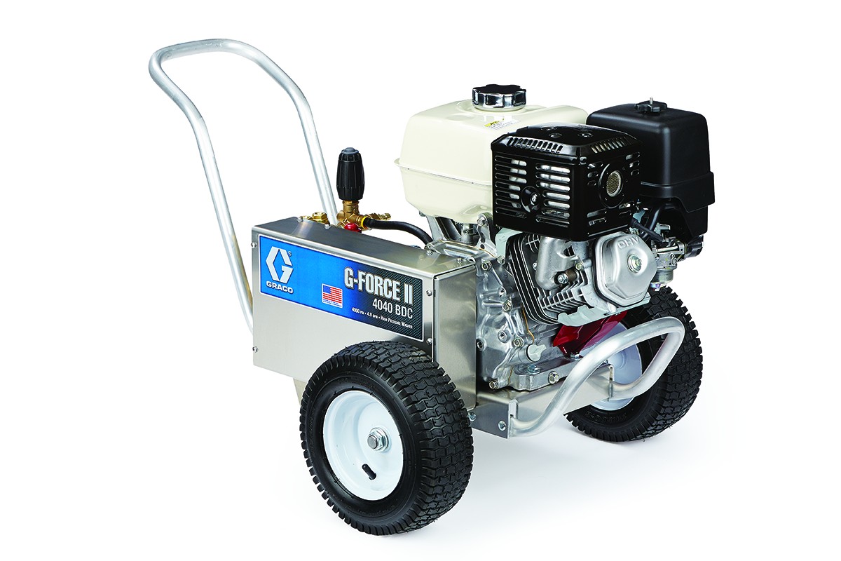 The G-Force II 4040 BDC pressure washers are Graco’s top-of-the-line units, designed to tackle the toughest cleaning jobs. With the highest performance available for tough, day-long cleaning and surface preparation jobs, these models can easily handle even the most demanding jobs.