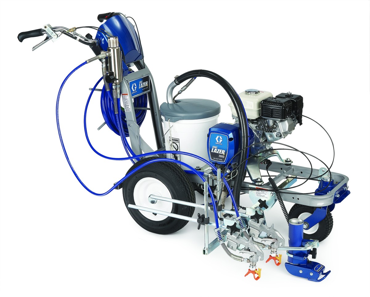 This LineLazer IV 5900 features Graco's exclusive Auto-Layout System and is a 1 or 2 gun professional striping machine designed specifically to deliver the most precise and consistent lines in the industry. Materials sprayed are most heavy, low VOC, waterborne and rubberized traffic paints. This sprayer is ideal for your continuous heavy-duty line striping requirements and awesome for parking lot layouts